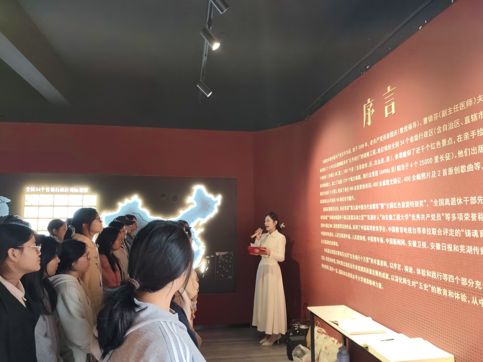 新生分批走进红色“骑”迹体验馆,接受沉浸式党性教育。在讲解员的细致解说下,同学们通过图片资料、实物展陈、情景复原等丰富形式,循着赵国庆、曹锦芬两位老党员的骑行足迹,重温党在不同历史时期的奋斗历程,深刻感受到党的优良传统、红色基因与初心使命。一幅幅鲜活的场景、一个个感人的故事,让在场新生深受触动。